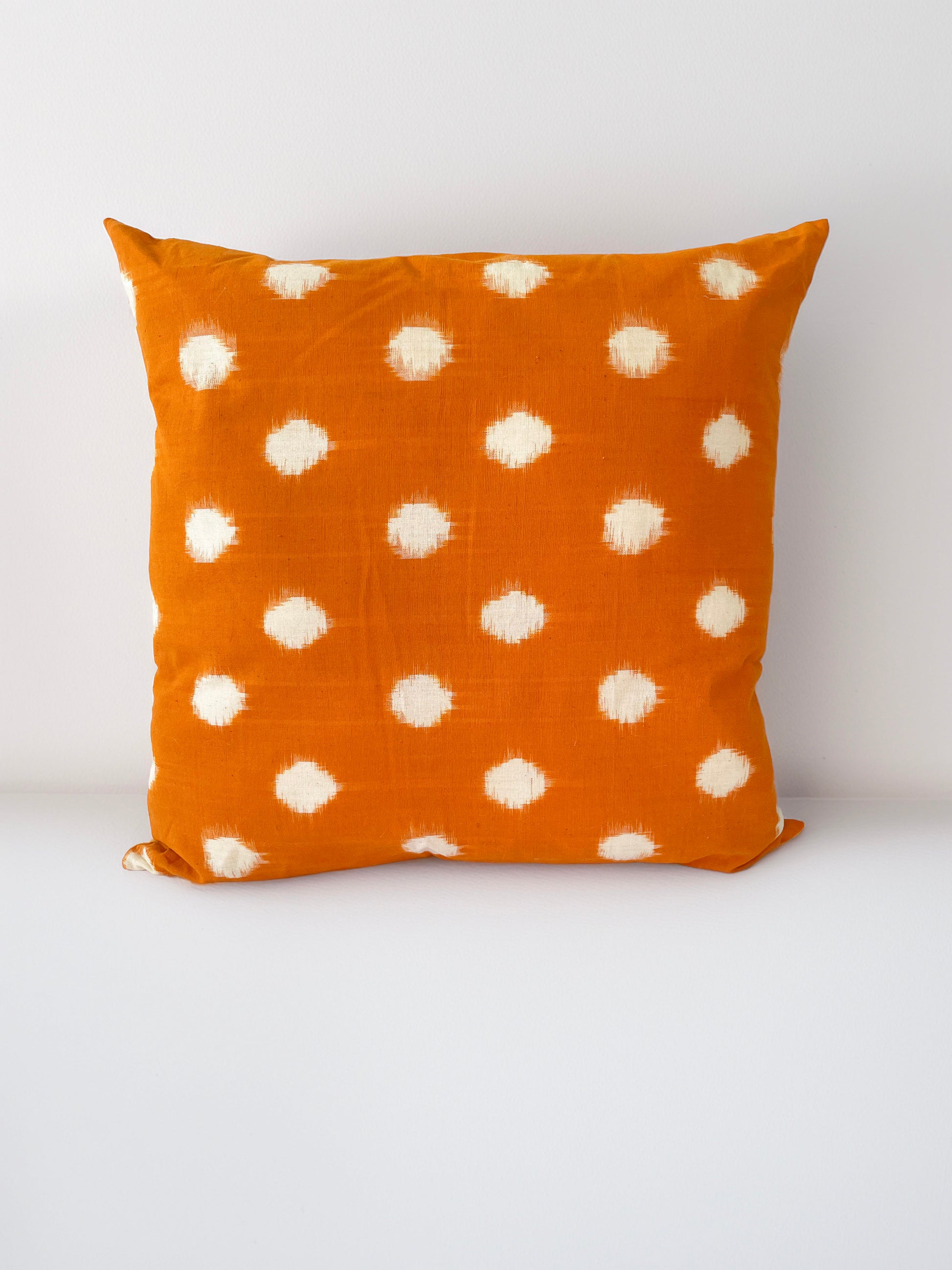 This one’s got depth. Our Saffron Swagger Cushion blends a rich, earthy base with off-white woven spots in a traditional Ikat style — adding warmth, texture, and just the right pop of personality to your space.